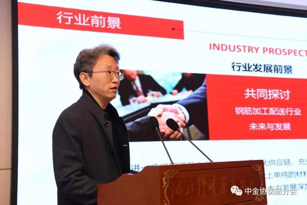 中金協鋼筋分會常務副會長、河北物流集團金屬材料有限公司總經理孫繼承在致辭中表示:面對新的機遇和挑戰,面對新的壓力困難,鋼筋加工流通領域,只有堅持以行業標準為引領,以產供銷三方協同合作、渠道整合、跨界融合,才能有效促進鋼筋產業化的高質量發展,推進產業提升和協同發展,實現多方共贏。