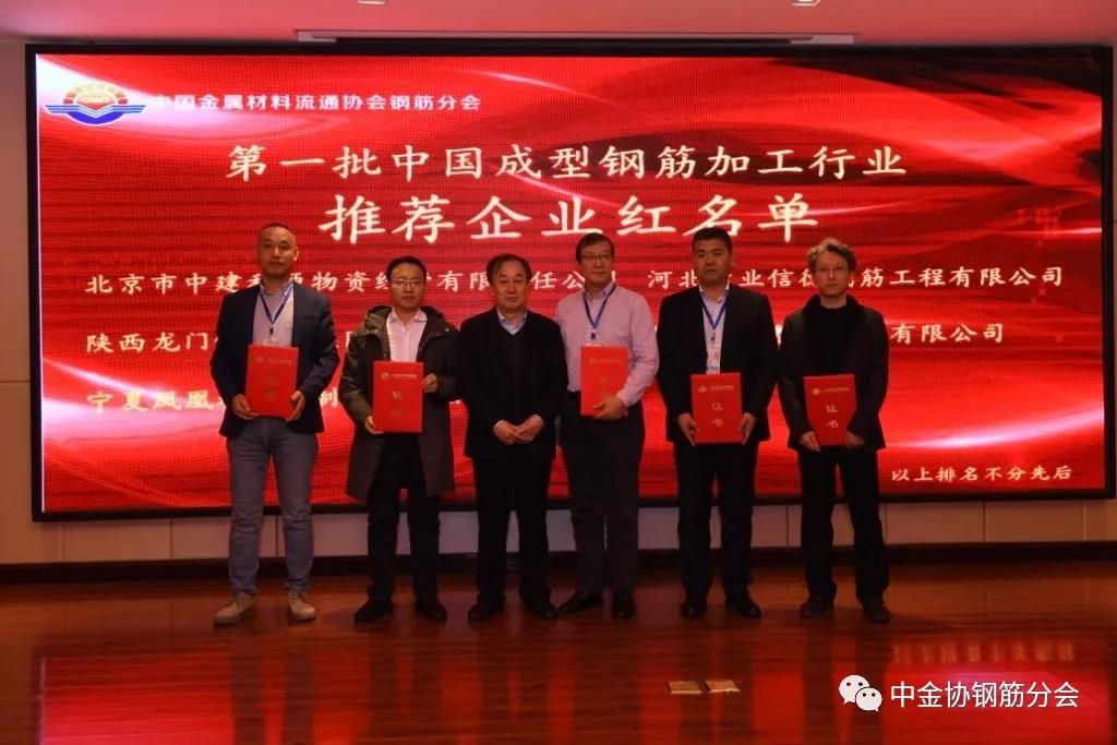 為助推成型鋼筋行業向高質量、規范化發展,峰會期間發布了“第一批中國成型鋼筋加工行業推薦企業紅名單”。北京市中建利源物資經營有限責任公司、河北敬業信德鋼筋工程有限公司、陜西龍門鋼鐵(集團)有限責任公司、韓城涵大智能加工有限公司、寧夏鳳凰城智能制造有限公司成為第一批紅名單推薦企業。中金協鋼筋分會會長單位、河鋼集團銷售總公司副總經理王曉國為上述企業頒發了推薦證書。
