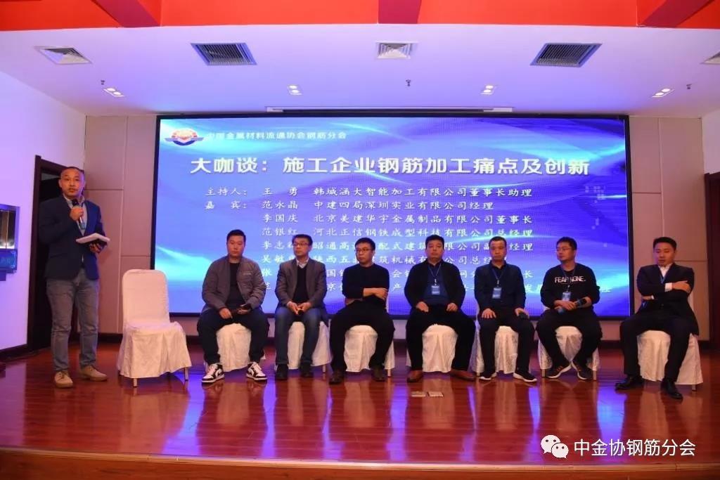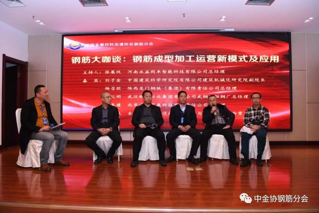 在“鋼筋大咖談”環節,中國建筑科學研究院有限公司機械化研究院副院長劉子金、陜西龍門鋼鐵(集團)有限責任公司總經理楊召朋、武漢鋼鐵江北集團有限公司武鋼漢陽鋼廠總經理張紀明、北京邁思發展科技有限責任公司總經理郭冬建、全聯城市基礎設施商會建設與材料設備分會常務副秘書長孫凱就“鋼筋成型加工運營新模式及應用”這一話題展開了激烈的討論和觀點碰撞。河南永益同豐智能科技有限公司總經理張展悅主持本環節。
