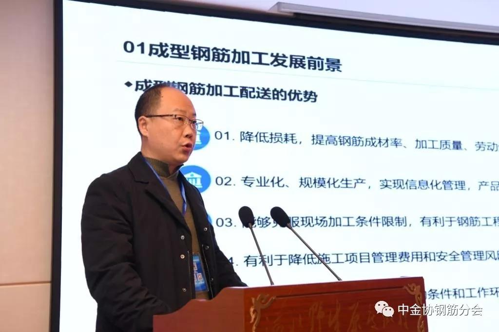 重慶市建設技術發展中心副主任謝厚禮以“重慶市鋼筋加工政策推廣及應用成果”為題進行了主題發言。謝厚禮指出:重慶作為全國五個高強鋼筋示范城市之一,在鋼筋集中加工方面積累了一定的經驗。針對當前鋼筋加工行業面臨的頂層政策設計缺位、市場應用不規范、企業實施能力不強等諸多共性問題,謝厚禮給予了相應的對策建議。第一,要以裝配式建筑發展為契機,強化鋼筋加工配送管理制度的法律地位和處罰手段;第二是以智能化大數據應用為契機,加強企業組織實施能力建設;第三則是加強協調形成合力,進一步加強鋼筋加工配送技術應用監管與推廣力度。